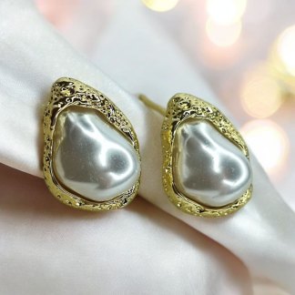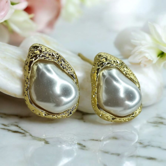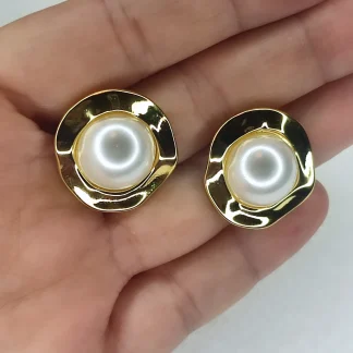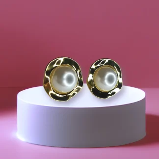 Σκουλαρίκια με Λευκές Πέρλες & Χρυσό Ατσάλι